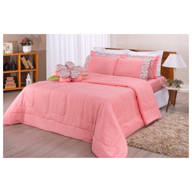 Contém:01 - Edredom Casal Queen 2,40 x 2,20mts02 - Portas Travesseiros 70 x 50cm02 - Fronhas 70 x 50cm01 - Lençol de baixo com elástico (para colchões de 1,58 Largura x 1,98 Comprimento) 01 - Almofada flor tamanho irregular Tecido: 100% PoliésterEnchimento: 100% Poliéster Instruções de lavagem:nas primeiras lavagens, não as misture com peças de outras cores;enxágüe as peças de forma a retirar todo o sabão;em casos de felpa puxada, o ideal é cortá-la com tesoura;em caso de manchas pequenas, experimente detergente neutro ou sabão de coco;não dobrar quando úmidas, mantenha-as abertas para evitar a proliferação de fungos e bactérias;temperatura máxima 40°c;não usar alvejante;não é permitida a secagem em máquina de secar;não passar a ferro e não limpar a seco;não lavar em máquina de lavar roupas; Atenção:Foto ilustrativa.Variação das cores podem ocorrer de acordo com o monitor.