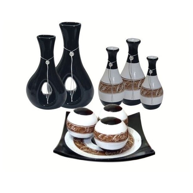 Você recebera em sua casa um kit completo com 9 peças confira os tamanhos a baixo trio de vasinhos, dupla de vasos vazado e fruteira com esferas, feito com o mais alto padrão de qualidade, temos certeza que você vai se surpreender. Aproveite.