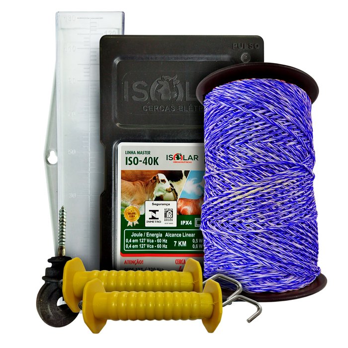 Kit Cerca Elétrica Residencial Rural + Pluviometro Estamos a disposição para quaisquer esclarecimentos 1 eletrificador 50 isoladores gancho curto (9 cm) 2 manoplas de porteira 500 metros de fio eletro plastico com proteção UV 1 Pluviometro Obrigado por nos escolher Agradecemos pela sua escolha!