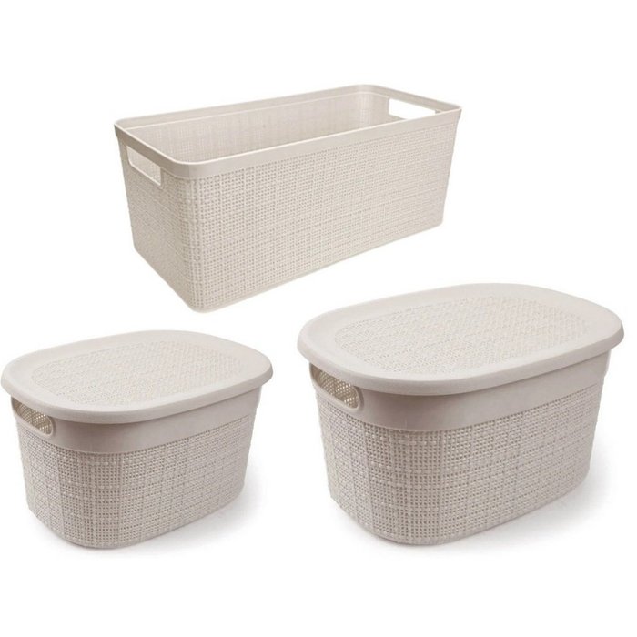 Kit Cesto Caixa Organizador Vime Plástico Rattan 3 Peças - Nitron creme