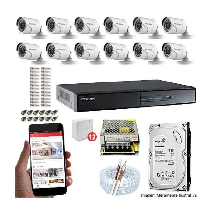 Kit CFTV 12 Câmeras Hikvision DVR 16 canais DS-7216 HD 500GB