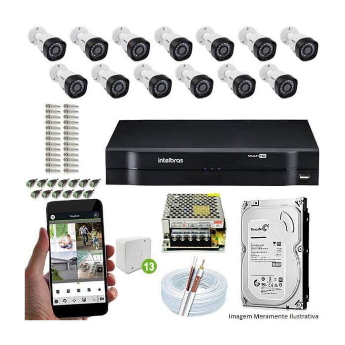 Kit Cftv 13 Câmeras VHD 3130B 720P 3,6mm DVR Intelbras MHDX 1016 + HD 2 TB