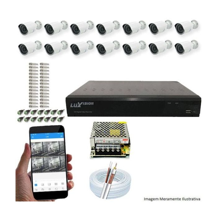 Kit Cftv 14 Câmeras AHD-M 720p Dvr 16 Canais Luxvision 5 em 1 + ACESSORIOS