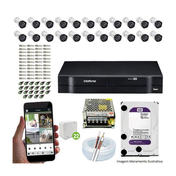 Kit Cftv 22 Câmeras VHD 3130B 720P 3,6mm DVR Intelbras MHDX 1032 + HD 4 TB WDP
