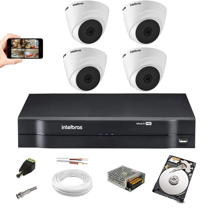 Kit CfTV 4 Câm. Vhl 1120D 720P Intelbras DVR Mhdx 1108 1Tera