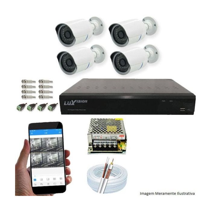 Kit Cftv 4 Câmeras AHD-M 720P 3,6MM Dvr 4 Canais Luxvision 720p + ACESSORIOS