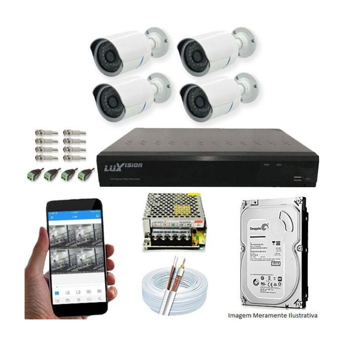 Kit Cftv 4 Câmeras AHD-M 720P 3,6MM Dvr 4 Canais Luxvision 720p + HD 500GB