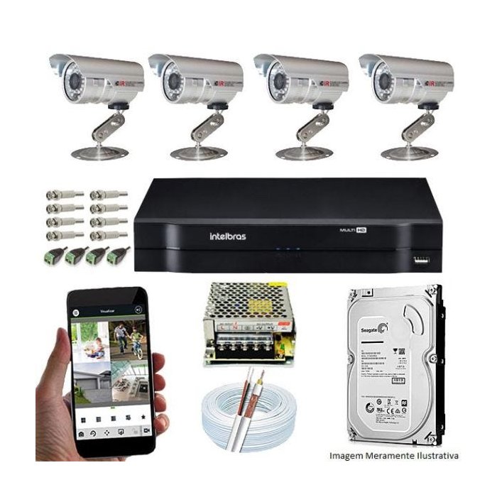 KIT CFTV 4 Câmeras CCD 1/3 3,6MM Infravermelho DVR 4 Canais Intelbras com HD 500GB
