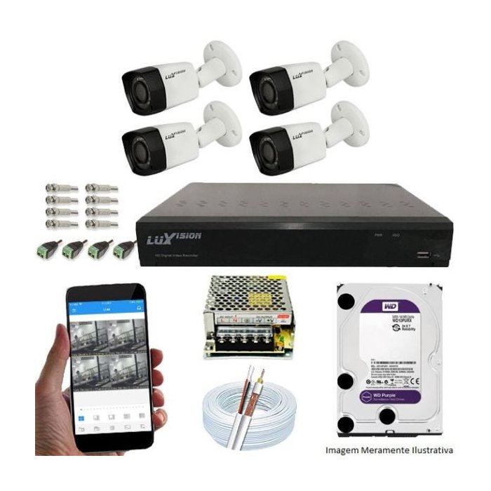 Kit Cftv 4 Câmeras Luxvision 720p Dvr 8 Canais Luxvision ECD 5 em 1 + HD WDP 1TB
