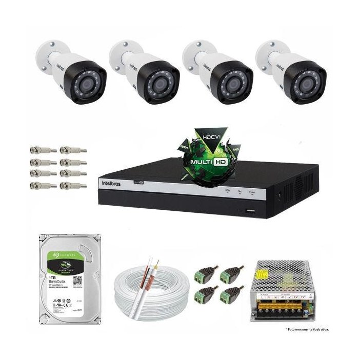 Kit Cftv 4 Câmeras VHD 1220B 1080P 3,6mm DVR Intelbras MHDX 3004 + HD 1TB BARRACUDA