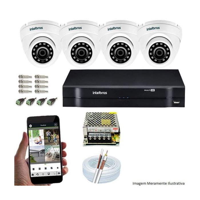 Kit Cftv 4 Câmeras VHD 3120D 720P 2,8mm DVR Intelbras MHDX 1004 + ACESSORIOS