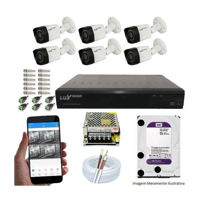 Kit Cftv 6 Câmeras Luxvision 720p Dvr 8 Canais Luxvision ECD 5 em 1 + HD WDP 1TB