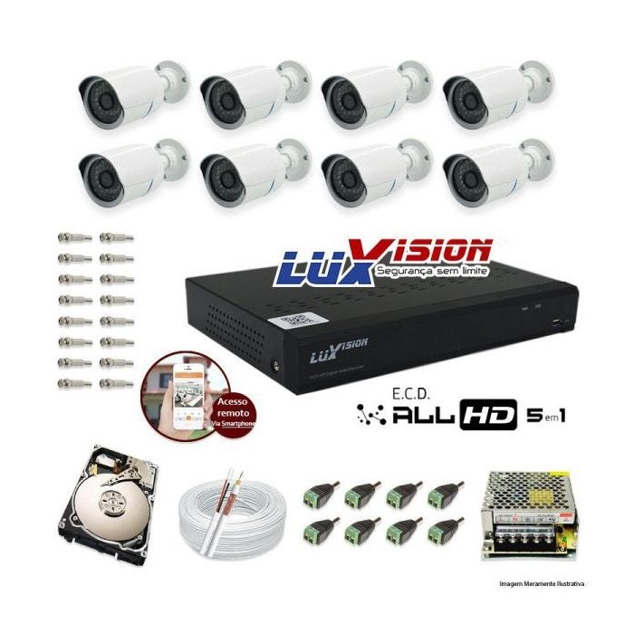 Kit Cftv 8 Câmeras AHD 720p Dvr 8 Canais Luxvision 5 em 1 + HD 1TB