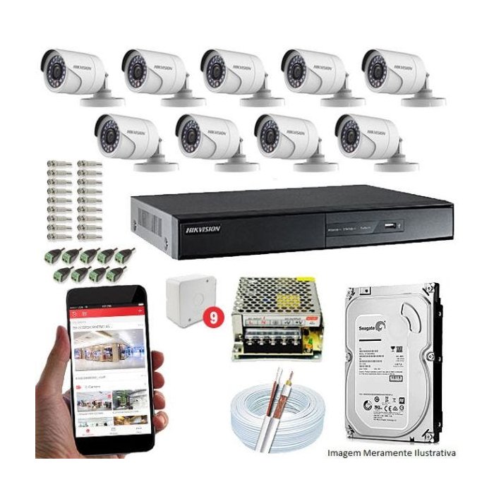 Kit CFTV 9 Câmeras Hikvision DVR 16 canais DS-7216 HD 2TB