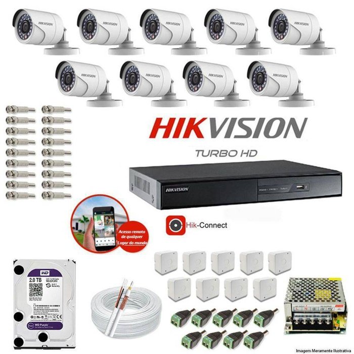 Kit CFTV 9 Câmeras Hikvision DVR 16 canais DS-7216 HD 2TB WD