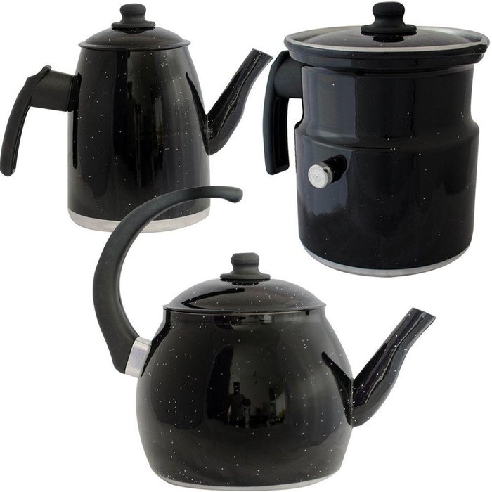 Kit Chaleira Leiteira E Bule Gulê Alumínio 3 Peças Preta -
