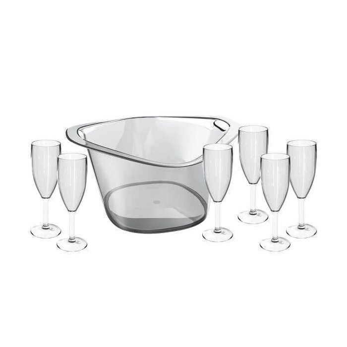 Kit Champanheira Grande Balde De Gelo 8L Conjunto 6 Taças Champagne Plástico