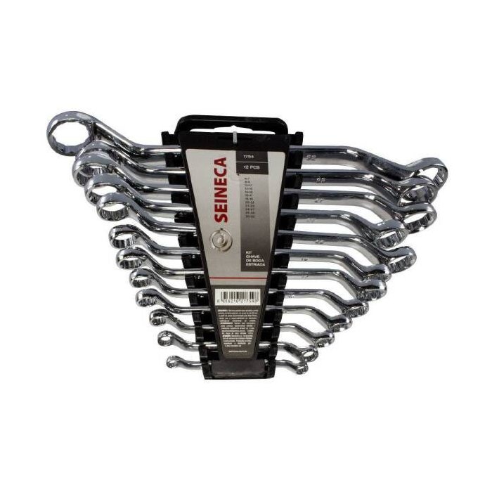 A Chave de Boca Estrela é recomendada para apertos de porcas sextavadas ou decagonais. O Kit de Chave de Boca Estriada Seineca possui diversos diâmetros de chaves para afrouxar ou apertar diferentes tamanhos de parafusos e porcas. O kit possui 12 (doze) peças, cujos diâmetros variam de 6mm a 32mm.