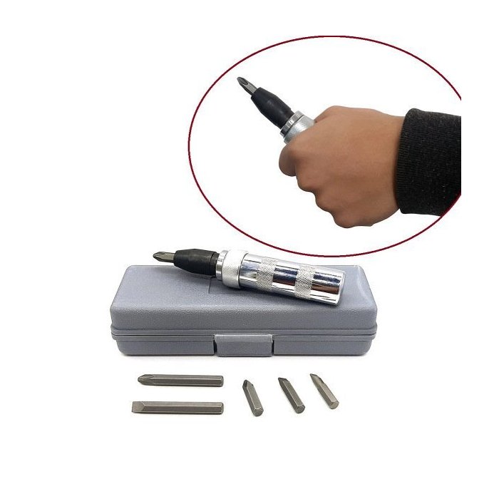 Kit Chave de Impacto com 6 Bits Phillips Fenda e Adaptador Martelete Manual