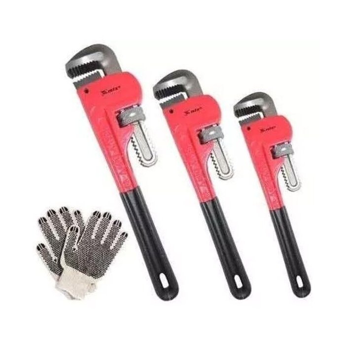 Kit Chave Grifo Aço 12 14 18pol Uso Industrial Emborrachada
