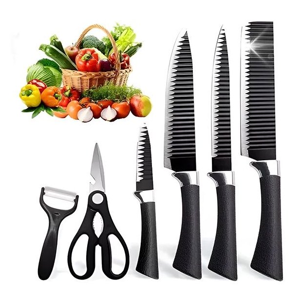 Eleve a sua experiência na cozinha com este elegante conjunto de facas de corte, composto por seis peças de alta performance. Com lâminas super afiadas e revestimento antiaderente, as facas possuem um design moderno e sofisticado na cor preta, tornando-as não apenas funcionais, mas também um item de destaque em sua cozinha.