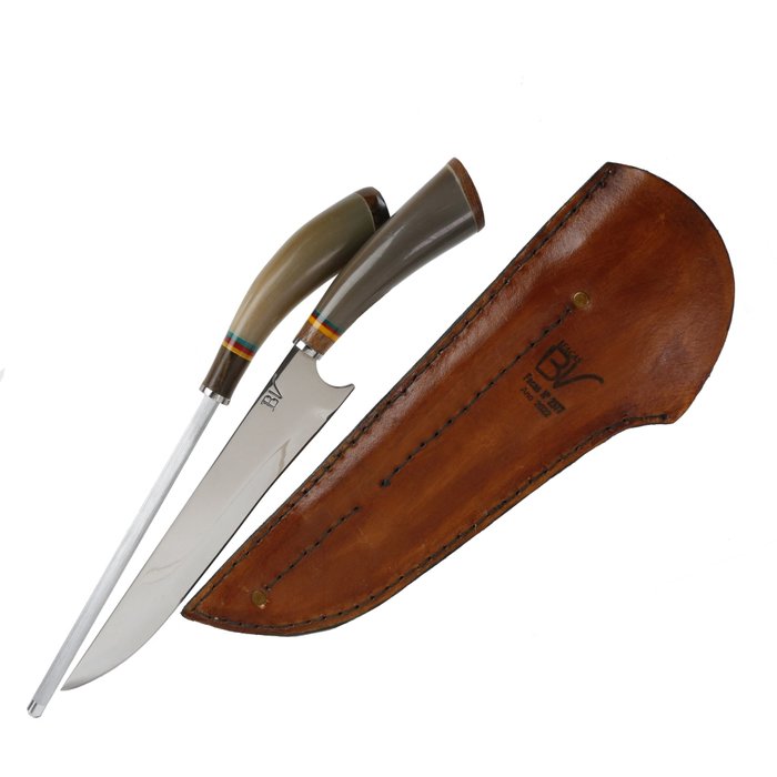 Kit Chifre de Touro Faca 10 Pol. Aço Carbono + Chaira