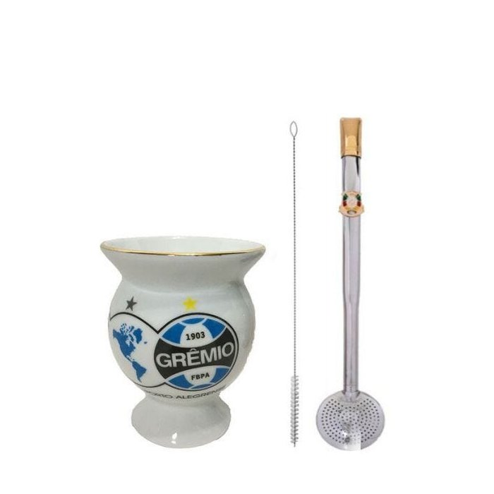 Kit chimarrão cuia cerâmica Grêmio bomba relevo