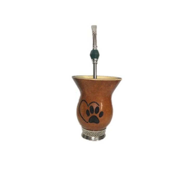Kit chimarrão cuia pata de cachorro e bomba aço inox pedra verde