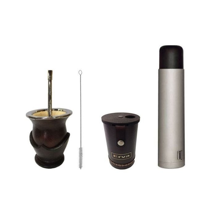 Kit chimarrão Cuia uruguaia bomba inox térmica e porta erva