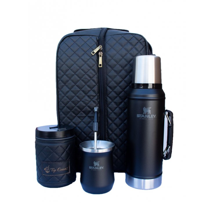 | Modelo | Kit chimarrão preto Mateira Bi- partida Couro, Bomba bojo colher, Garrafa Stanley 0,95L e porta erva |