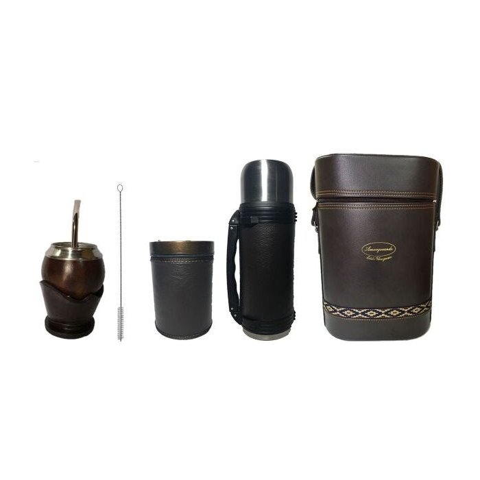 Kit chimarrão Uruguaio em Couro completo cuia coquinho escura