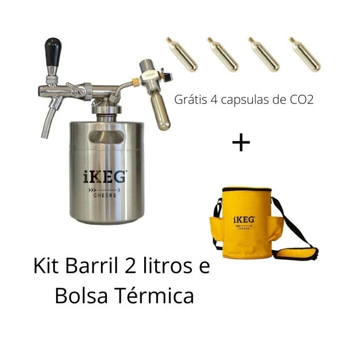 Kit Barril inox e bolsa térmica de 2 litros iKeg – Grátis 4 Capsulas de CO2