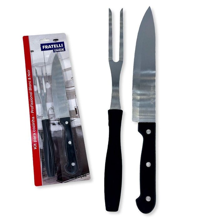 Kit Churrasco 2 Peças Profissional Faca e Garfo Blanc & Noir Única