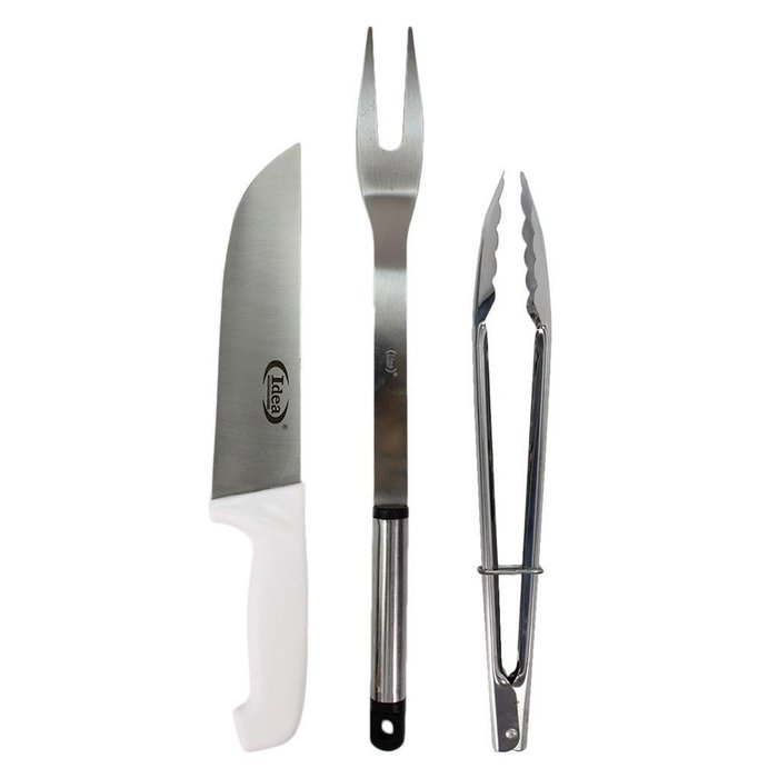 Kit Churrasco Aço Inox Faca Garfo E Pegador Para Churrasqueiro