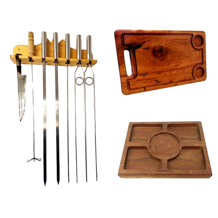 Kit Churrasco Com Tábua de Carne + Porta Espetos de Parede + Petisqueira