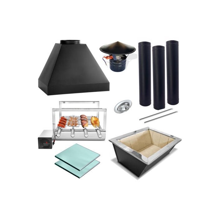 Vendido por MAKEER® - PRODUTOS PARA CHURRASCO E MUITO MAIS! CHURRASQUEIRA GOURMET ILHA MAKEER | KIT COMPLETO - FÁCIL INSTALAÇÃO KIT COMPLETO PRETO - SUPORTE GIRATÓRIO - TAMANHO G A nossa qualidade é garantida, com o melhor acabamento do mercado! Churrasqueira com acabamento soldado e micro lixado, com aparência de peça única, sem recravas, emendas ou arrebites aparentes. Composição do kit: - 01 Chapéu chinês preto 9" (230 mm) com suporte para exaustor; - 01 Exaustor de fumaça bivolt para chapéu chinês com hélice de alumínio; - 01 Dimmer de parede para controlar velocidade do exaustor de fumaça; - 01 Manta térmica (50 cm) pra fiação do exaustor de fumaça; - 03 Dutos preto 9” (230 mm) com 1 metro de comprimento encaixado; - 01 Coifa em aço carbono preta 4 águas 100 cm x 60 cm x 50 cm (LxCxA); - 01 Botoeira para iluminação de churrasqueira; - 01 Ponto de luz com lâmpada dicroica preto para coifa 3 águas; - 02 Vidro lateral temperado transparente 58 cm x 60 cm x 08 mm (CxAxE); - 04 Canaletas para vidro para bancada e coifa(Já fixado na coifa); - 01 Suporte giratório em aço inox 430 p/ 6 espetos; - 06 Espetos tridentes aço inox 430 com cabo de alumínio; - 01 Braseiro cooktop Aço inox 304/Gal. com manta térmica e tijolo-refratário. Tamanho do braseiro: Área interna: 70 × 40 cm. Tamanho total: 82 × 52 × 25 cm (LxCxA). O encaixe do braseiro na bancada é de 78 × 47 cm. (Corte do nicho). Ficou com dúvidas? Nos envie a sua pergunta, será um prazer responder.