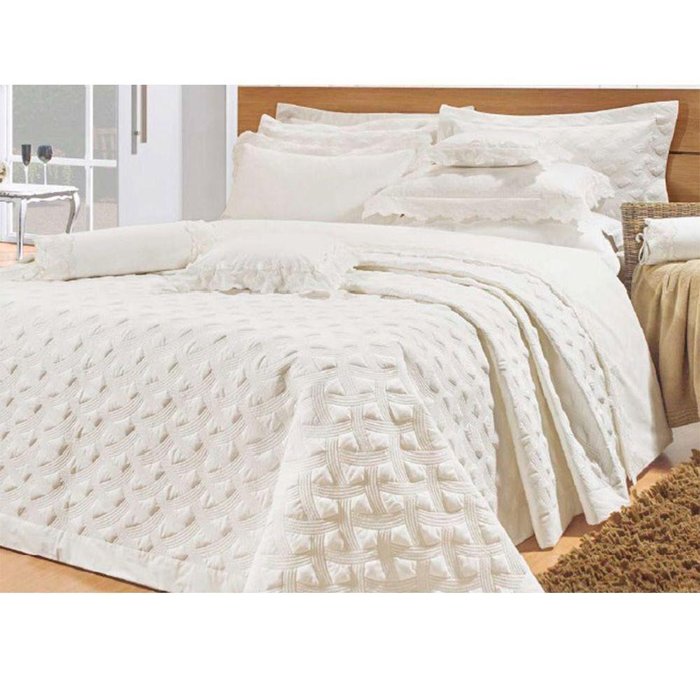 Kit Cobre Leito Casal 03 Peças Bordado Percal Amande Palha Única