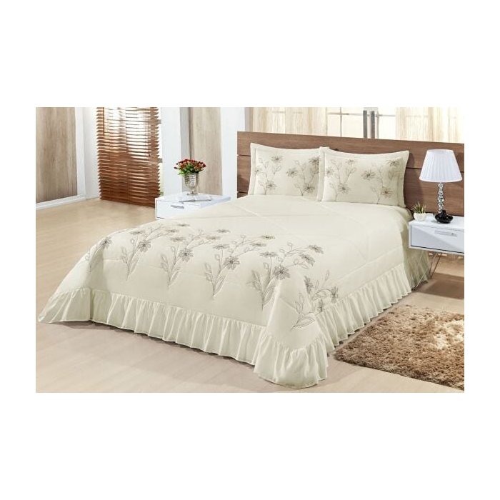 Kit Cobre Leito Casal King Lírio 03 Peças Colcha - Palha - Finos Enxovais