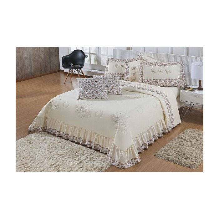 Kit Cobre Leito Casal King Naturalle 07 Peças Bordado Colcha - Palha