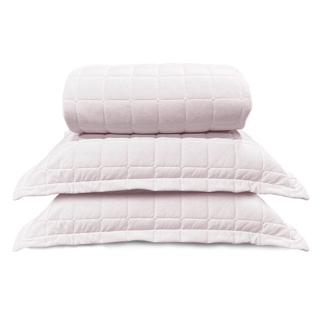 A cor Branco é uma peça elegante e sofisticada que vai dar um toque de glamour ao seu quarto. Fabricado em malha 100% algodão com fio penteado 30/1 e gramatura de 140g/m². Nosso Kit Cobre Leito contém um leve acolchoado em 100% Poliéster e gramatura de 60g/m², perfeito para dar o toque de acabamento a cama e protegê-la. Por ser mais leve, é ótimo para o dia a dia, tanto no aconchego com o uso junto ao ar condicionado quanto no frio menos intenso do inverno. O toque natural do algodão contribui para um tecido mais suave e prático, dando uma sensação agradável para te abraçar e envolver enquanto você dorme. Acabamento com bordado Quadriculado que faz com que o enchimento permaneça no lugar por mais tempo.