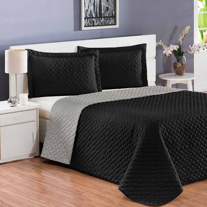 Kit Cobre Leito Casal Pati Preto e Cinza Premium