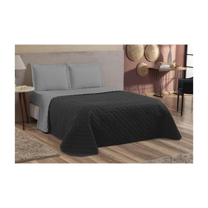 Kit Cobre Leito Casal Queen 3 Peças Dupla Face Preto/Cinza