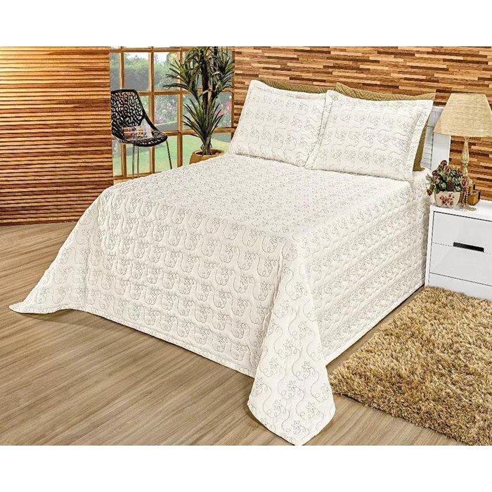Kit Cobre Leito Casal Queen 3pçs Luxo Premium Bordado Palha