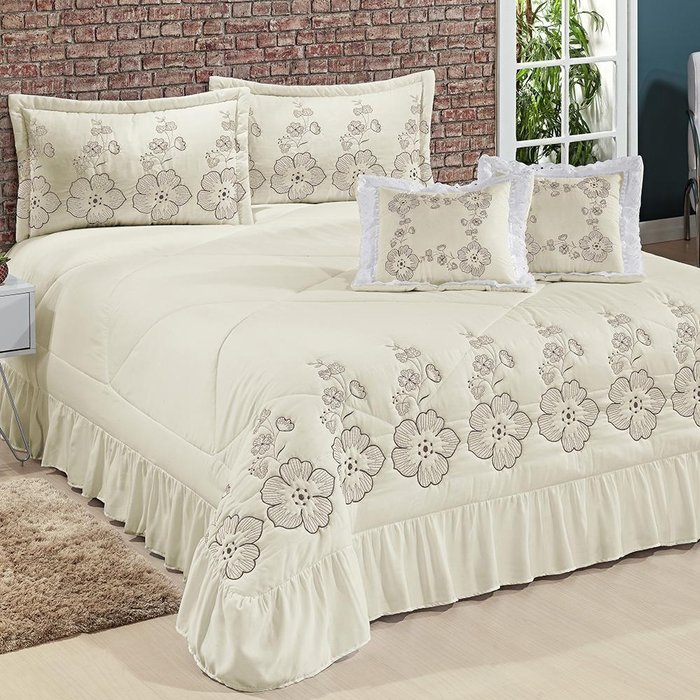 | Modelo | Kit Cobre Leito Casal Queen Amore 07 Peças Bordadas - Palha |