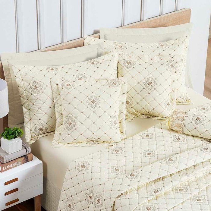 Kit Cobre Leito Colcha Nuance King 06 Peças Percal 200 Fios 100% Algodão Bordado - Vanilla Vanilla