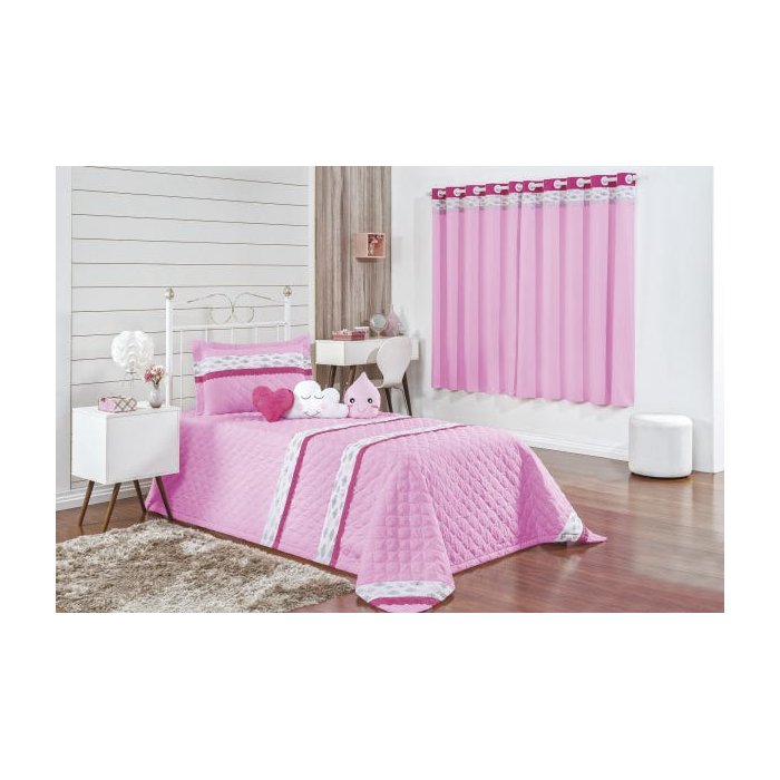 Kit Cobre Leito Colcha Solteiro Nuvem Infantil Menina 05 peças - Rosa