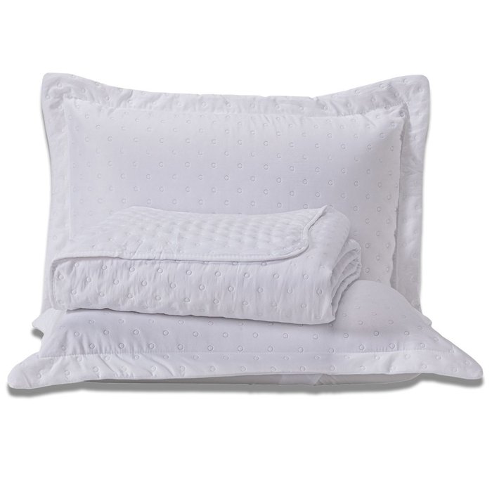 Kit Cobre Leito Colcha Sublime Percal 300 Fios Toque de Pluma Dupla Face com Fronhas King 03 Peças C Branco
