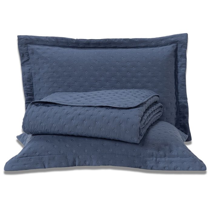 Kit Cobre Leito Colcha Sublime Percal 300 Fios Toque de Pluma Dupla Face com Fronhas QUEEN 03 Peças Azul