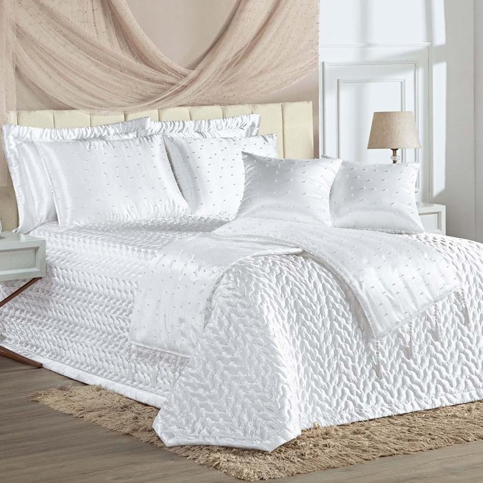 Kit Cobre Leito Fascínio Queen Cetim c/ Tule de Pérola 10 Peças - Branco