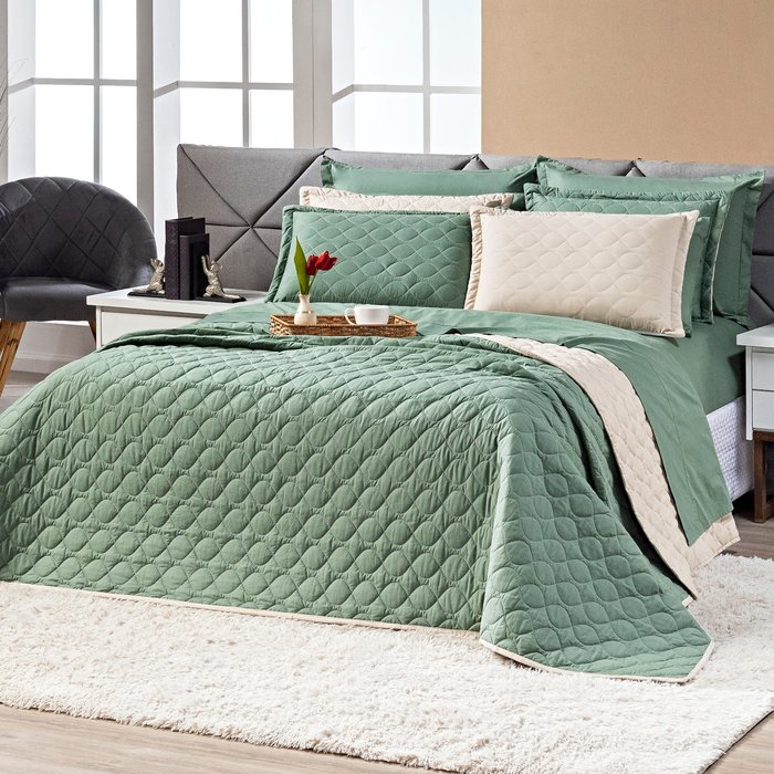 Kit Cobre Leito Heaven Dupla Face com Fronha Solteiro 02 Peças - Matelado em Linha Percal 300 Fios 1 Verde